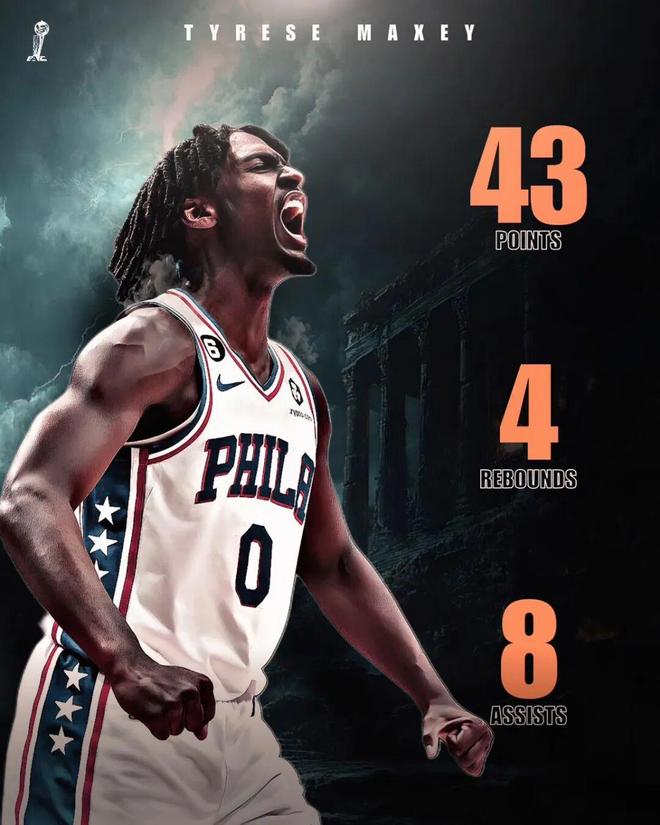 这场比赛,费城超跑马克西再度交出出色表现:全场出战41分钟,投篮32中15,三分11中4,罚球10中9,轰下43分4篮板8助攻1抢断。