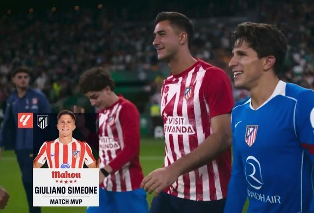 官方消息,朱利亚诺-西蒙尼当选皇家贝蒂斯对阵马德里竞技一役全场最佳。